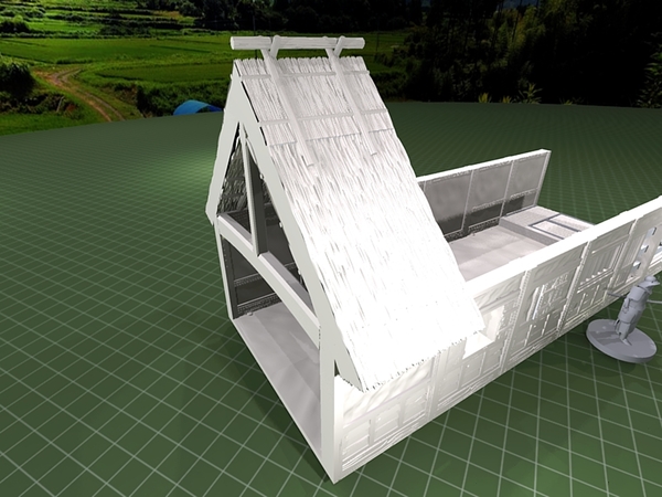 The pic above shows the middle section of the thatched roof, which will have two different shape versions to cap the ends with. Another roof variant will be a shallower-sloped wooden roof, with the distinctive stones on top to weigh it down.