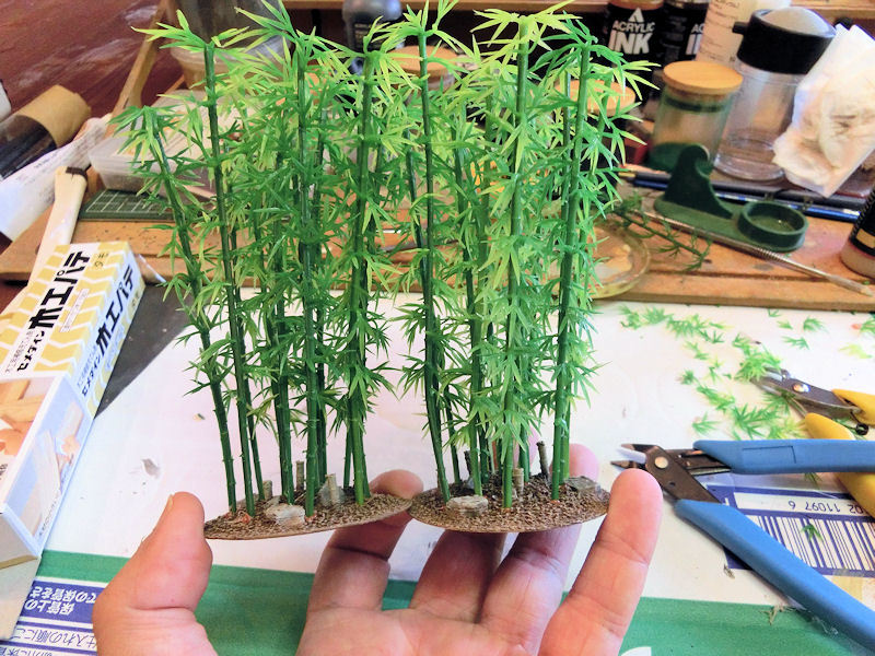 ▲ Here's a base with several stalks of bamboo trees inserted. See how the brown glue is almost completely hidden? It's well worth getting a few sticks of brown glue if you can find them!