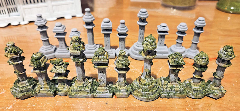 ▲ This last pic shows a brilliant idea Rob has come up with. Rather than individually print and assemble 10 moss-covered stone monuments, he has first combined all the individual pieces into one long row of monuments, and printing them in one go!