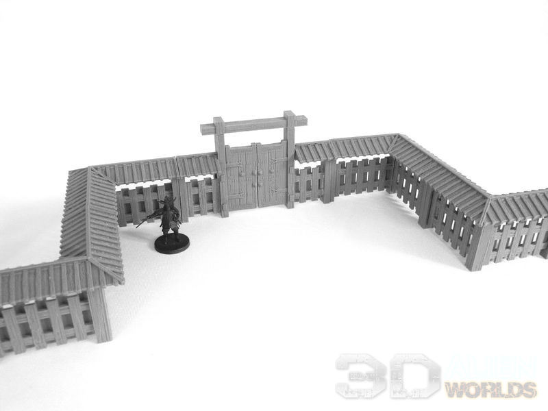 The fence part is 30mm tall (approximately head height on most models), with the wooden roof stretching up to 53mm. Walls can be used with or without the textured bases, and include holes for 5mm x 1mm magnets hidden under the roof, and can be used in conjunction with the Samurai Stone Walls set. Straight and corner sections are included in the set.